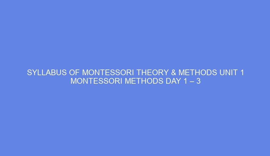 SYLLABUS OF MONTESSORI THEORY & METHODS UNIT 1 MONTESSORI METHODS DAY 1 – 3